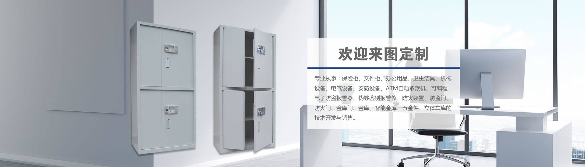 ? 專業(yè)從事:保險(xiǎn)柜、文件柜、辦公用品、衛(wèi)生潔具、機(jī)械設(shè)備、電氣設(shè)備、安防設(shè)備、ATM自動(dòng)取款機(jī)、可編程電子防盜報(bào)警器、偽鈔鑒別報(bào)警儀、防火裝置、防盜門、防火門、金庫(kù)門、金庫(kù)、智能金庫(kù)、五金件、立體車庫(kù)的技術(shù)開發(fā)與銷售